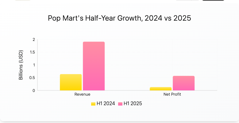 - Labubu explodes into a global brand. Pop Mart reports revenue up 204% and profits nearly 400% in H1 2025, with Labubu driving more than a third of sales.