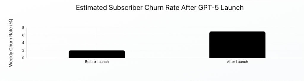 - GPT-5 flops on launch. Daily active ChatGPT users fell 8% week-over-week, Reddit logged 12,000 downgrade complaints in the first week, and subscriber churn rose an estimated 5 points.
